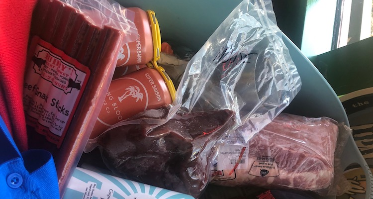 Choice cuts of meat, as well as prizes like beer, liquor, brewery swag, gift cards, and a wide variety of other goodies.