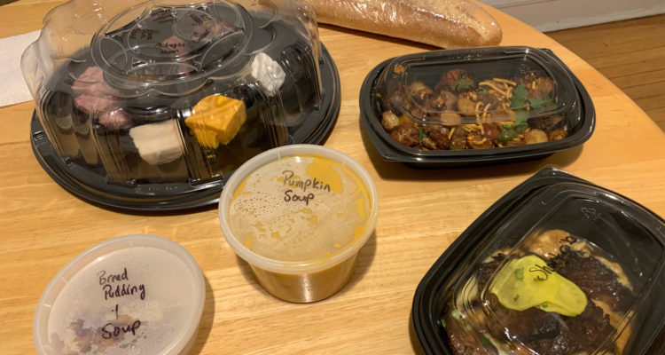 The restaurant’s always-excellent charcuterie and cheese boards ($20-$30) are served in roomy plastic containers, and come complete with grainy mustard, sweet pickles, roasted nuts, and bread. Soups ($8-$15) come in either 16 oz. or 32 oz. containers. Salads are available, too ($10-$11), as are snacks like mixed nuts and beet pickled eggs ($5). Munching and sharing all of the above will make you feel like you’re in the cozy, candlelit confines of Odd Duck, and not your harshly lit dining room overflowing with laundry and old electronics and a giant dollhouse filled with enough Barbies and Frozen figures to stock an entire aisle at Walmart. (Just us?)