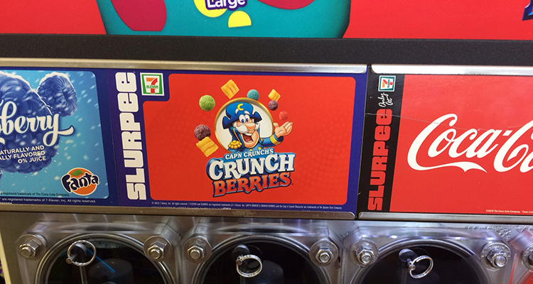 Despite our apprehension, we made history by being the first people in Milwaukee to try Sonic Drive-In’s strange Pickle Juice Slush when it was released last month. Keeping with the summer theme of forgotten franchises unleashing random frozen drinks upon an unsuspecting populace, 7-Eleven just started offering—oh no!—a co-branded beverage we couldn’t help but try. The convenience store released its limited time Cap’n Crunch’s Crunch Berries Slurpee in select markets this month, just in time for today’s Seven-Eleven Day (7/11, get it?) celebration.