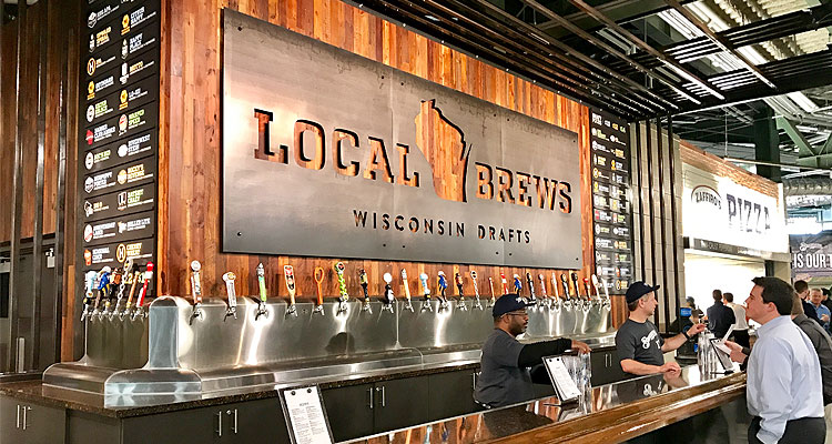 At a ribbon cutting ceremony Wednesday afternoon, the Milwaukee Brewers unveiled a slew of new food and beverage upgrades to Miller Park, including the highly anticipated “Local Brews” bar. Located on the Loge Level near section 207, the bar features 24 Wisconsin-brewed beers from breweries like Lakefront Brewery, Third Space Brewing, Wisconsin Brewing Co., Raised Grain, MillerCoors, Leinenkugel’s, and more. (A complete list of the breweries and brews is below.)