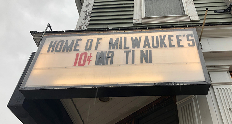 Not long after Don’s opened in the former site of c.1880 late last year, the new Walker’s Point bar and restaurant somewhat-quietly announced a crazy new special on its website and on its 1st Street-facing marquee. The aforementioned exterior signage simply reads: “Home Of Milwaukee’s 10¢ Martini.” Upon seeing this, our head started spinning about exactly how a restaurant in the year 2019 could possibly offer a promotion that gives customers a classy cocktail for pre-Prohibition prices. Is it served in a thimble? Is it a “you get what you pay for” gimmick where—against all better judgement and health code requirements—bartenders ring out a rag into a tumbler or something equally disgusting? Is it a full-size (and full-price) martini with a dime plopped into the glass in the place of an olive? Okay, so we knew none of those were probably it, but we were sure there had to be some sort of catch.