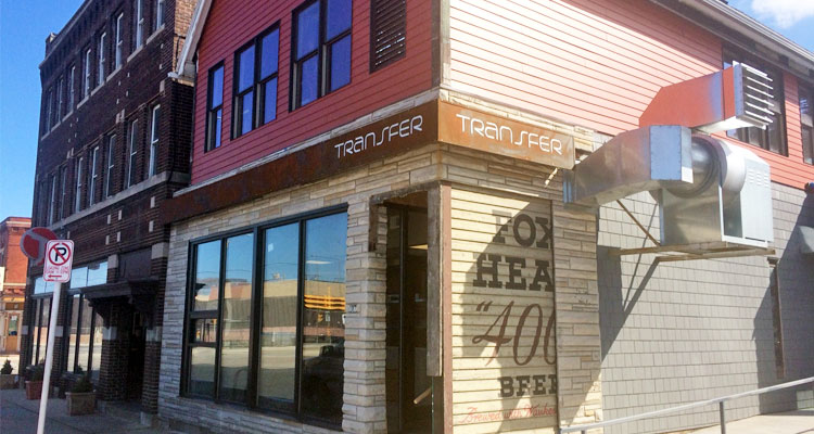 The expansion occupies the building immediately to Transfer’s west. Along with increasing the restaurant’s kitchen and prep area—and allowing for takeout and delivery—the new space will serve as an ADA-compliant events room. Private parties, meetings, community gatherings, and concerts of up to 60-75 guests will be able to utilize the room. A small stage for live music, a newly installed skylight, a wall that will be dedicated to work from local artists, a full bar with two beers on tap (for now), and two restored “ghost signs” (Haven Tavern and Fox Head beer) are also included. An outdoor patio in the back of the building is planned for next year.