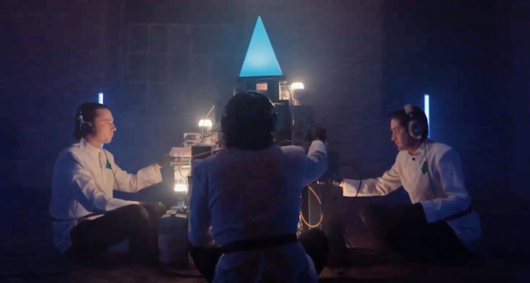 The spiffy clip features the members of Astral Hand (Vic Buell, Al Kraemer, Anthony Smith, Dan Dahl) fiddling with some retro-futuristic communication tech straight out of Logan’s Run, and eventually making contact with someone…or something. Anyone else getting big “Metropolis meets John Carpenter’s Prince Of Darkness” vibes from that final shot?