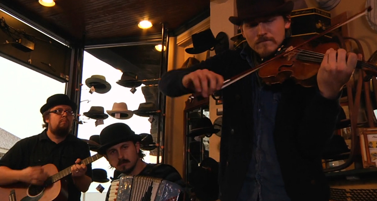 Then latest video valentine to Milwaukee and its burgeoning music scene features The Vitrolum Republic. The near-nine-minute production follows the zydeco-influenced folk quartet to Stag Barbershop in Bay View, where the band gets pampered with haircuts and beard trimming. From there, they cover their new do’s in fine handmade hats from nearby haberdasher The Brass Rooster and take in a hat-making demonstration. Between the Bay View primping and in-store busking, live footage from a Hotel Foster gig is spliced in as well.