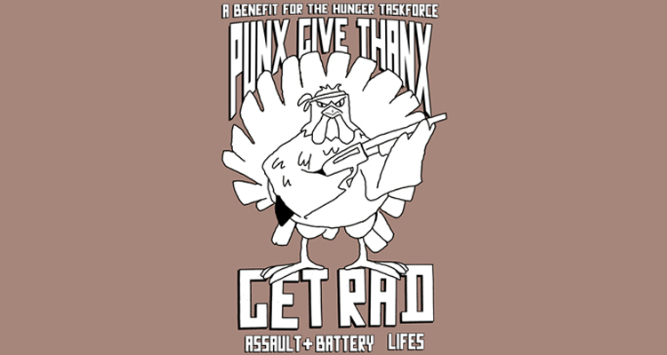 Get Rad’s Dave Rudnik says the time is right because, simply, everyone will be in town. Get Rad will be joined in the long-awaited follow-up to the first Punx Give Thanx in 2009 by Assault & Battery and LIFES, both of which feature members of Get Rad. The quinquennial event will benefit Hunger Task Force, with all proceeds from the $5 cover (or two canned foot items) going to the charity. “Hunger Task Force is a very visible charity, especially at this time of year and it enables us to donate something other than money,” Rudnik says.