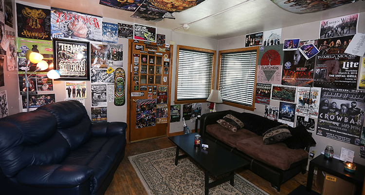 Though quaint, the rear room offers a relaxing atmosphere to acts. Aside from posters and stickers from past performers affixed to walls, the room has subtle decor that includes throw pillows, candles, and area rugs one might not picture being contained within a WAMI Award-winning heavy metal club.