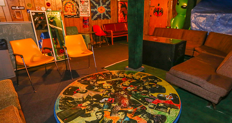During those performances, artists were able to relax in Mad Planet’s basement green room, which features a spacious wood-paneled and couch-laden lounge, a foyer with overflow seating, a private bathroom, risque art, an extensive archive of band stickers and graffiti, and a notable Elvis presence.