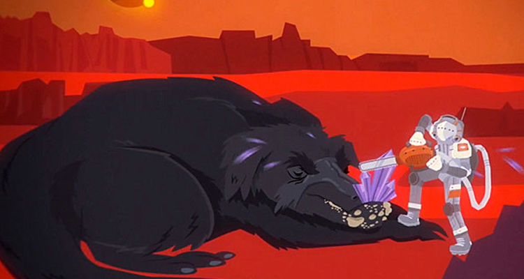 Echoing the “electro-folk” feel Field Report occasionally employs on the record, the animated video is set in space in the not-so-distant future. It finds beings traveling to another planet to harvest a diamond-like resource from another creature’s mandible (a less-than-subtle reference to the “Take these rocks out of my mouth” lyric). “When the new pilot that we follow for the majority of the story finally realizes the implications of what he was sent to do, he destroys everything out of regret and disgust,” Whitty says.