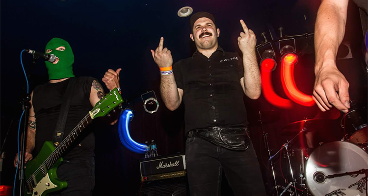 It’s a tough job, but somebody has to do it. Since being “court appointed” to the position about four years ago, a Milwaukee man who goes by the name Officer Bradford puts on his uniform—jean shorts, a fanny pack, a baton, and station-mandated mustache—and spends more than 200 days of each year on stages throughout the country and all corners of the globe making sure Madison pop-punkers and resident rapscallions on the Fat Wreck Chords roster Masked Intruder stay in line with the law. Such is the life of a civil servant.