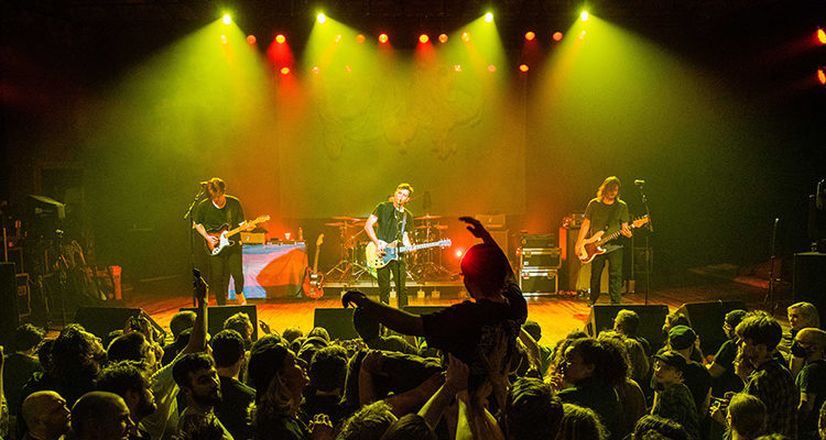 Around 9:50 p.m., John Tesh’s unmistakable “Roundball Rock!” was piped over the venue’s P.A., signaling PUP’s turn on Turner Hall’s stage. After the last notes of the iconic NBA On NBC theme played, the headliners wasted no time supporting their latest release with a potent one-two punch of “Four Chords” and “Totally Fine,” the first two songs off The Unraveling Of PUPTheBand. Any concerns they’d neglect their past material were quickly put to rest, as they chased the newcomers with the anthemic pairing of “My Life Is Over And I Couldn’t Be Happier” and “Dark Days” from its first two albums. The trend of catalog-commingling continued for the remainder of the concert.