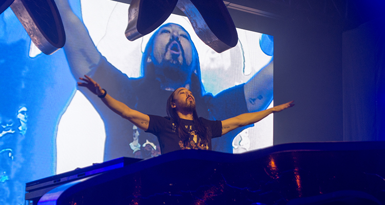 Throughout the rest of the set, random images of Aoki would appear on the video screen. It felt like being subjected to an Aoki promo video while simultaneously watching Aoki in the flesh. The night, as a whole, felt like being stuck inside the world’s longest commercial. The synchronized crowd jumping, confetti falling, and intricate stage set appeared as the most realistic TV/internet commercial to the non-participating onlooker. The participants, however, were seizing the moment and creating memories that they’ll likely recall for years to come.