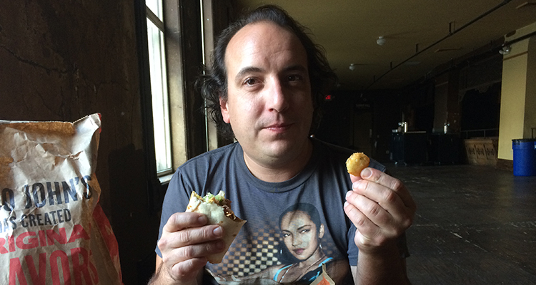 After learning this interesting tidbit about the accomplished actor and musician, we—fellow champions of the underappreciated “West-Mex” franchise—asked Har Mar if he’d like to meet up and discuss Taco John’s while eating some of his favorite selections from the restaurant. “Always,” he responded. Prior to his show at Turner Hall last night, Har Mar Superstar talked (between bites of his Taco Bravo and Potato Olés we bought for him) about his love of the franchise, the best and worst locations he’s experienced on tour, what menu item he recommended Spank Rock try, and what makes Taco John’s so special. Here’s what he had to say.
