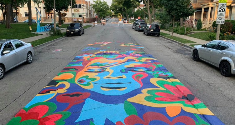 The City of Milwaukee Department of Public Works (DPW) is pleased to announce the release of its new Paint the Pavement program. Paint the Pavement gives Milwaukee residents the opportunity to showcase streets as places for people to enjoy. This program turns city streets and sidewalks into canvases that help enhance community identity and build a sense of place. Since 2018, DPW has allowed residents and community groups to paint artistic crosswalks through its Decorative Crosswalk program. The new Paint the Pavement program expands upon the Decorative Crosswalk program by increasing the types of murals that are eligible.