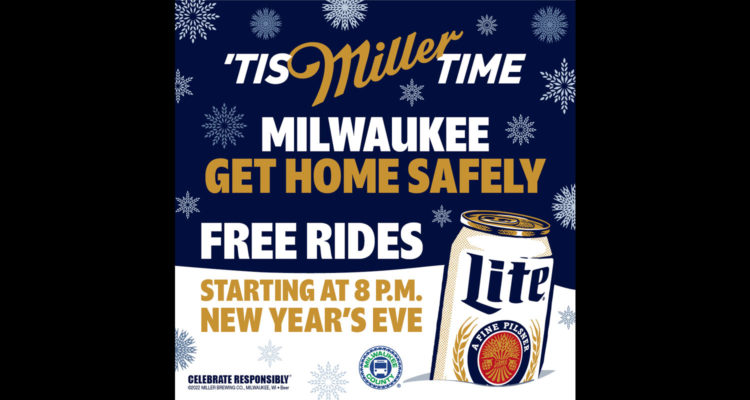 In addition to Milwaukee, Molson Coors will also offer free rides on New Year’s Eve through its Free Rides program to residents in Chicago, Dallas, Denver, Minneapolis-St. Paul and Phoenix this year.