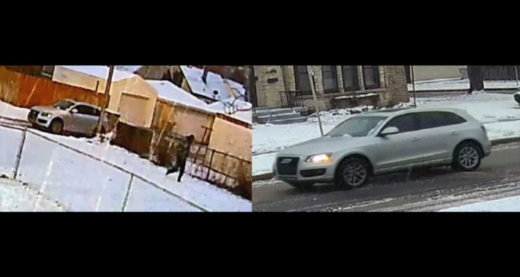 The suspect vehicle, shown above, is described as a silver Audi Q5 SUV with tinted windows.