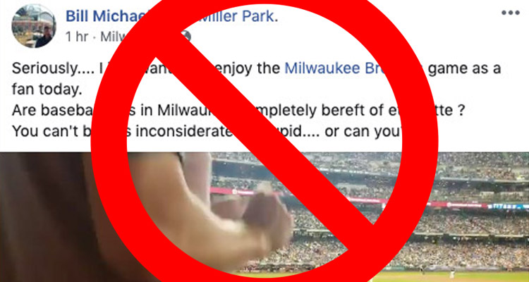 “Seriously…I just wanted to enjoy the Milwaukee Brewers game as a fan today,” Michaels grunted in a Facebook post and a similar tweet. “Are baseball fans in Milwaukee completely bereft of etiquette? You can’t be this inconsiderate or stupid…or can you?”