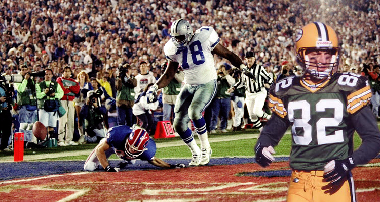 JK: His play in the Super Bowl ass-kicking by the Cowboys, the Leon Lett play, is the first play they show from that game, and the Bills lost by seven scores. That’s just a Bills play, a bust-ass play to save face, but still lose horribly.