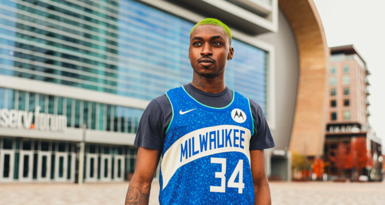 “We have developed an incredible bond with our fans, and we take great pride in our role in bringing communities together,” says Dustin Godsey, Bucks Chief Sales and Marketing Officer, in a press release. “The images of our fans packed in Deer District during the 2021 playoffs illustrated that we have the best fans in the NBA. This uniform pays homage to them.”