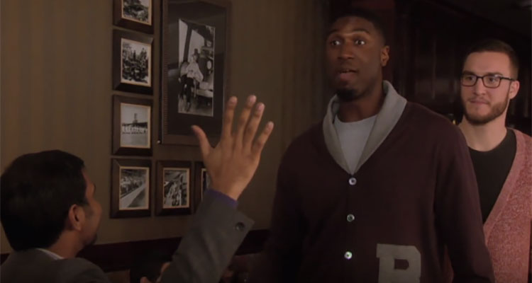 In his third and final instance of Parks & Rec screen time, Hibbert dropped by Wyatt and Ron Swanson’s shared bachelor party to cover the group’s bill at an Indianapolis steakhouse. In the 20-second appearance during an episode called “Two Parties,” Hibbert was accompanied by a Pacers teammate. Who’s the bookish giant lurking silently in the background at St. Elmo Steakhouse? That’s right. Miles Plumlee.