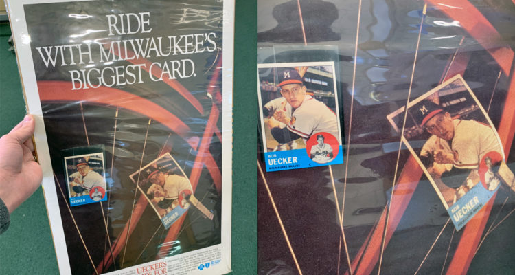 “Remember how much fun it was to clip a baseball card on a bike wheel?” the poster reads. “Of course, you wouldn’t use a good card, like a Mickey Mantle or a Willie Mays. But if you had a Bob Uecker, you were set!”