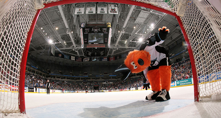 Back in 1998, during a Milwaukee Admirals’ rebranding effort, Roscoe was born. Though the AHL franchise has long operated with some variety of decorated naval official at the helm of its marketing strategy, Roscoe—an orange “sea dog” who still rocks a rat tail—presides over the game day experience, which is probably a more child-friendly option than having a decorated military skeleton roaming around its arena. Congrats to Roscoe on being less off-putting than a skeleton and a gigantic fish with legs.